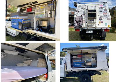 Lithium battery (Enerdrive 125ah) and 350w inverter plus multiple i-phone charger points Rear rubbish bag