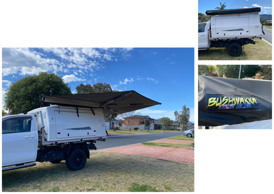Bushwacker Tru Blu awning (free standing or legs in high winds) purchased for $2800